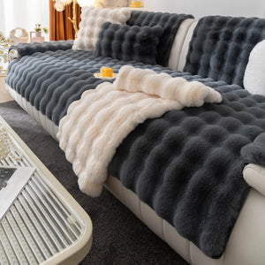 Épais, moelleux, incroyablement doux au toucher, il enveloppe votre canapé d'une texture qui invite à s'installer pour ne plus bouger. Vous vous enfoncez dans cette douceur pelucheuse et le monde extérieur s'efface. Vous lisez un livre, vous regardez un film, vous discutez avec vos proches....