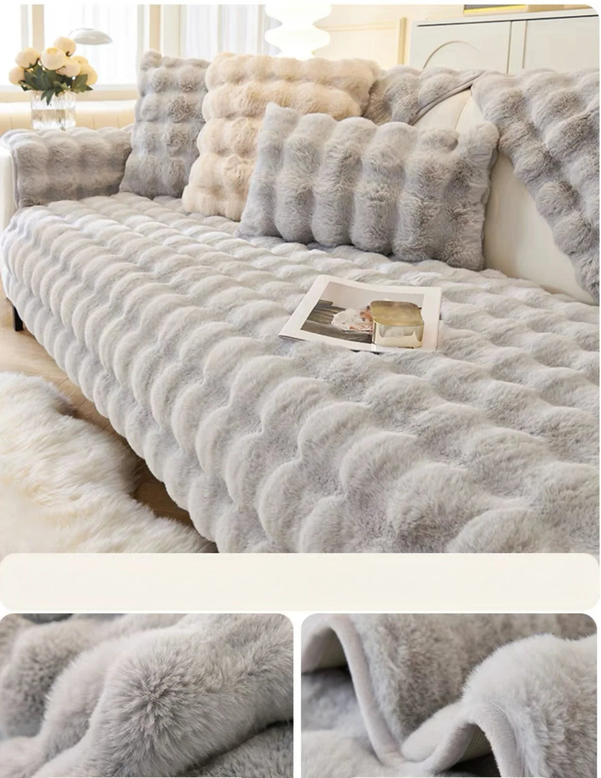 Épais, moelleux, incroyablement doux au toucher, il enveloppe votre canapé d'une texture qui invite à s'installer pour ne plus bouger. Vous vous enfoncez dans cette douceur pelucheuse et le monde extérieur s'efface. Vous lisez un livre, vous regardez un film, vous discutez avec vos proches....