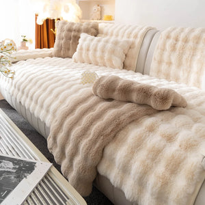 Ces dimanches d'hiver où l'on ne veut pas quitter son canapé. Ce plaid en imitation fourrure de lapin devient alors votre refuge préféré.