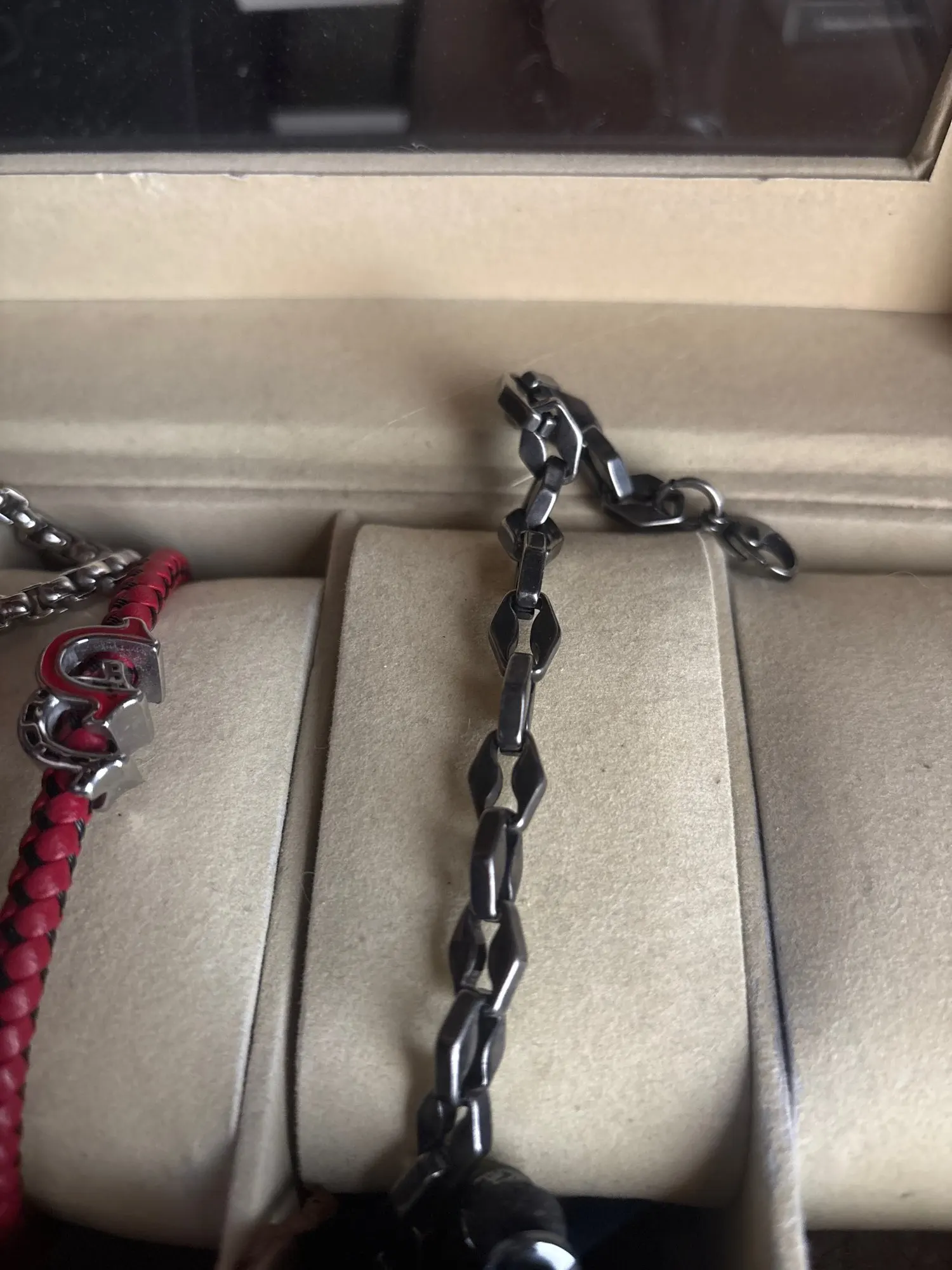 je viens de recevoir le bracelet et je l'aime vraiment, c'est exactement ce que je cherchais. j'espère que c'est vraiment de l'acier inoxydable et que ça ne change pas de couleur.