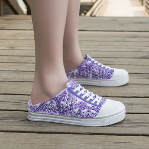 Ces baskets-mules sont faites pour celles qui aiment marcher sans contraintes, improviser une balade sur la côte ou sortir au jardin sans perdre de temps à lacer. Légères, fleuries, aérées : elles se glissent au pied comme une évidence. On les enfile au saut du lit, on les garde jusqu’au coucher du soleil. Leur confort souple s’adapte au quotidien estival, entre virée citadine et après-midi farniente. Ce modèle Fleurs, proposé en quatre teintes douces, épouse une allure épurée qui s’associe à toutes les envies de légèreté.