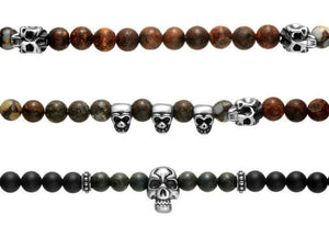 À tous les hommes modernes en quête d'un accessoire unique et plein de caractère, laissez-nous vous présenter notre bijou phare : le Bracelet en perles faites à la main en pierre naturelle avec tête de mort en acier inoxydable.