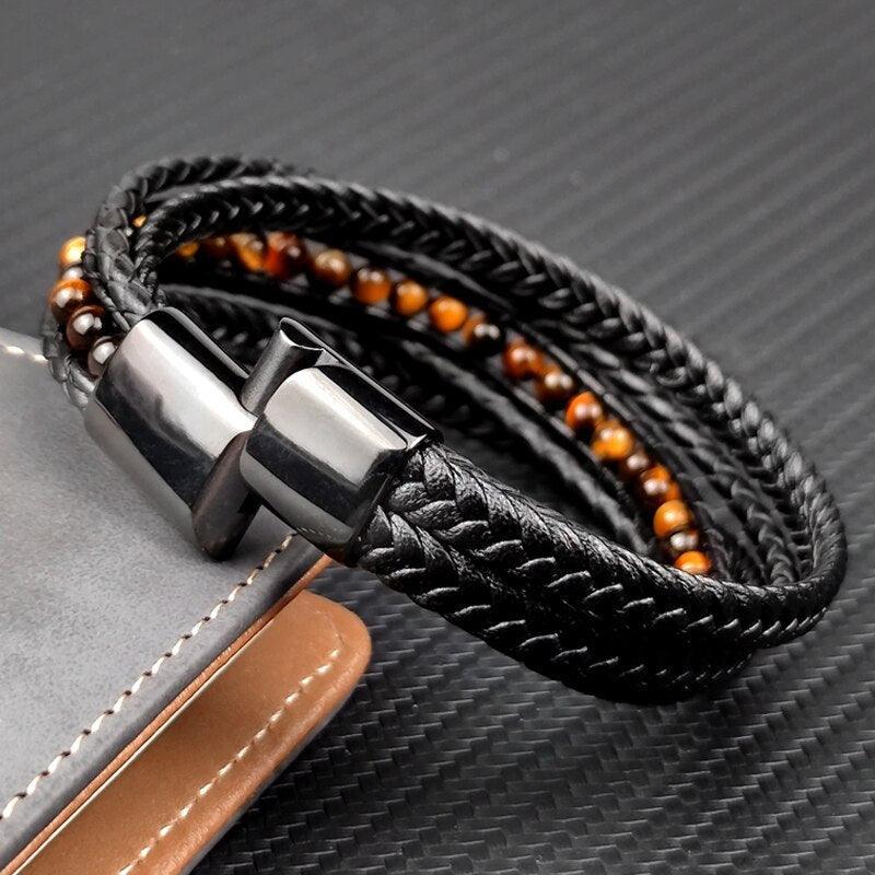 1. Un Symbole de Raffinement : Chaque bracelet est une déclaration de goût. Les perles en pierres naturelles semi-précieuses ajoutent une touche de sophistication discrète, tandis que le cuir apporte une robustesse virile.