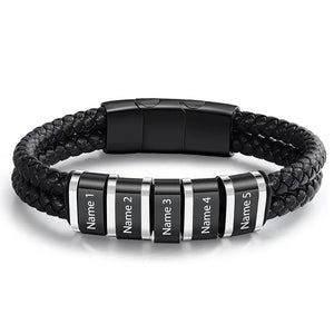 Bracelets Cuir Acier Personnalisé Gravure Prénoms Famille