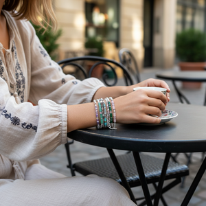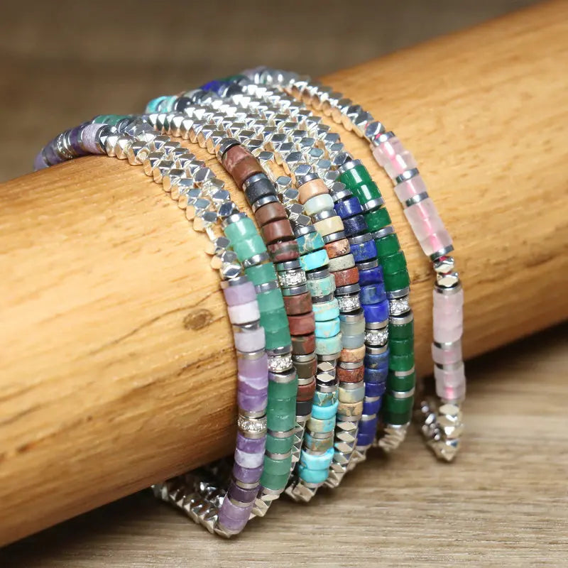 Chaque nuance de pierre naturelle (Quartz, Malachite, etc.) est pensée pour compléter votre look. Ce bracelet est conçu pour être empilé. Achetez-en plusieurs pour créer un stacking ultra-tendance sans surcharger votre poignet. C'est l'accessoire parfait pour injecter une dose de "Feel Good" et de couleur à votre quotidien. C'est simple : plus il y en a, plus l'effet est réussi.
