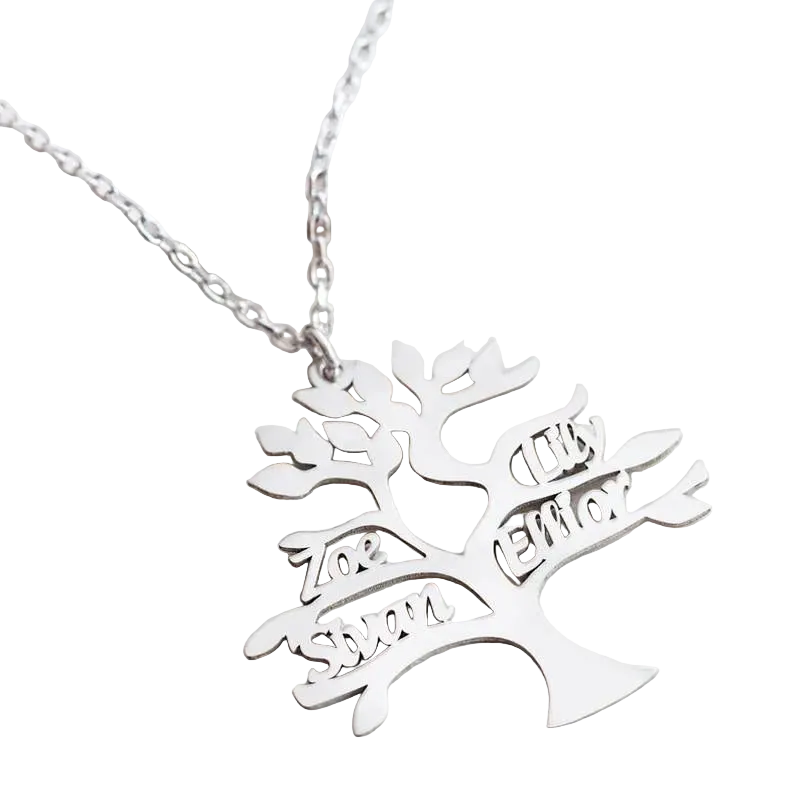 Collier Arbre de Vie Personnalisé Prénoms Gravés Famille Acier