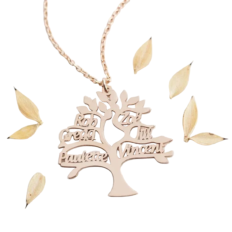 Pourquoi ce bijou touche autant : Chaque prénom gravé représente une branche de votre arbre familial. Maman qui porte ses enfants, grand-mère qui porte ses petits-enfants, sœurs qui portent leurs frères : ce collier transforme des noms en symbole vivant de connexion familiale. L'arbre de vie rappelle que nous sommes tous liés par des racines communes.