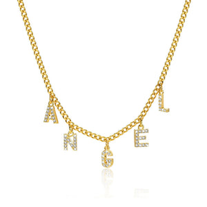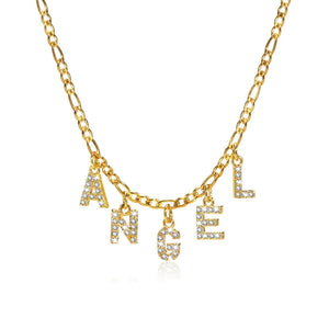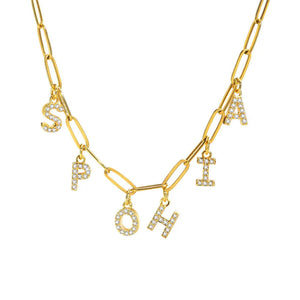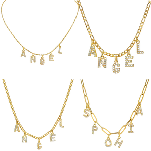 Collier Lettres Personnalisé Acier Doré Strass 1-9 Prénoms