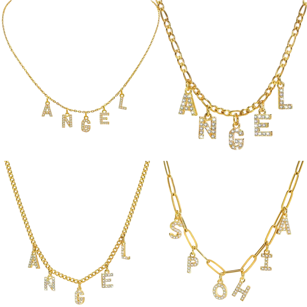 Personnalisable 1-9 lettres • Strass cristaux lumineux • 5 styles de chaînes • Plaquage longue durée