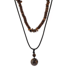 Description : Ce collier à deux rangs, mélange harmonieux de pierres naturelles et de bois, est l’accessoire idéal pour l’homme moderne qui chérit la nature et l’aventure.