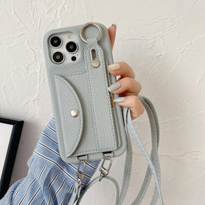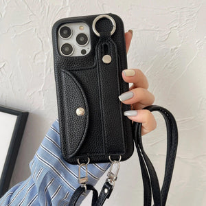 Coque Bandoulière iPhone en Cuir PU avec Porte-cartes et Sangle