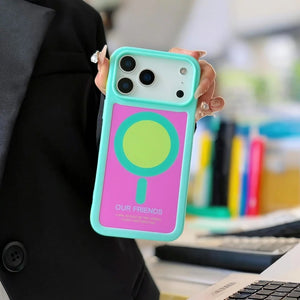 Des couleurs acidulées qui dynamisent la journée et une vraie protection antichoc. Le cadre en silicone TPU amortit les chutes, les bords surélevés protègent l’écran et le module photo. L’anneau magnétique MagSafe garantit la charge sans fil et l’accroche sur les accessoires aimantés.