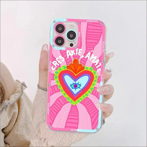 Avec son message affirmatif "Eres arte, ámate", cette coque iPhone Arty Madrid est une déclaration à elle seule. Le cœur sacré stylisé, l’œil protecteur, le fond rose vif, les détails fluorescents : tout dans ce design évoque les rues animées de Lavapiés, les voix fortes et les looks sans filtre. Un accessoire pour celles et ceux qui assument, qui rayonnent, qui osent.