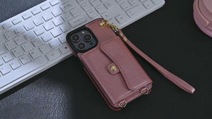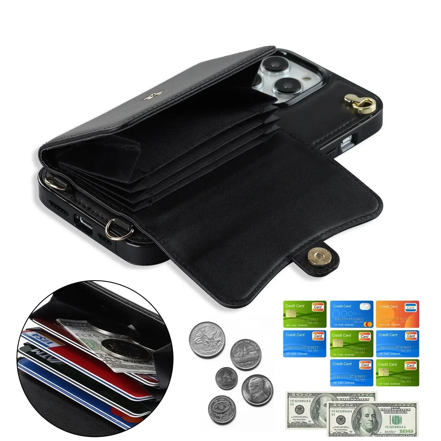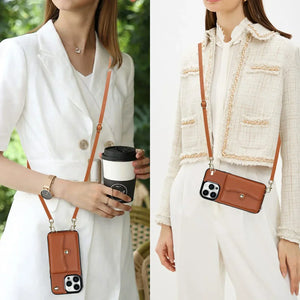 Coque iPhone Portefeuille Bandoulière Multifonction Cuir Élégante