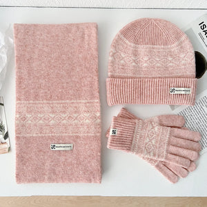 Ensemble Hiver Femme 3 Pièces Écharpe Bonnet Gants Laine Doux