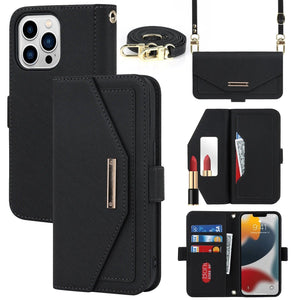 Étui Portefeuille Bandoulière Magnétique Cuir avec Miroir pour iPhone