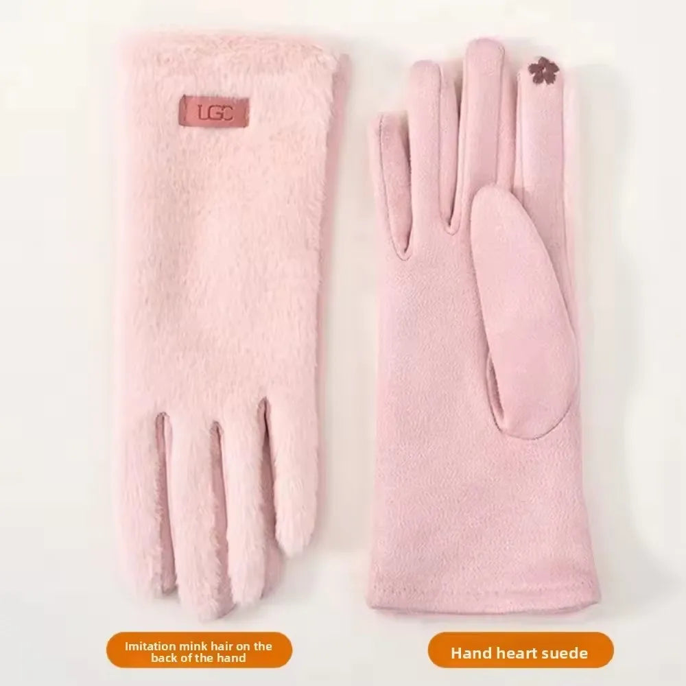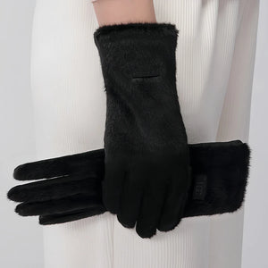 Gants Femme Daim Imitation Vison Tactiles Doux Chauds Élégants
