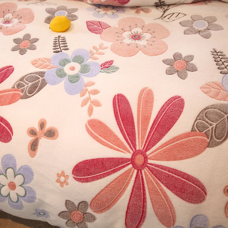 Housse Couette Flanelle Florale Hiver Douce Chaude 150-220cm
