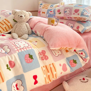 Housse Couette Velours Enfant Motifs Cartoon Douce Chaude 150-220cm