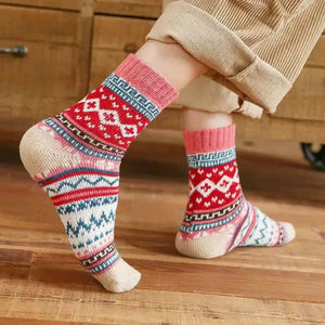 Paires Chaussettes Femme Chaudes Confort Rétro Ethnique Hiver par 5pcs