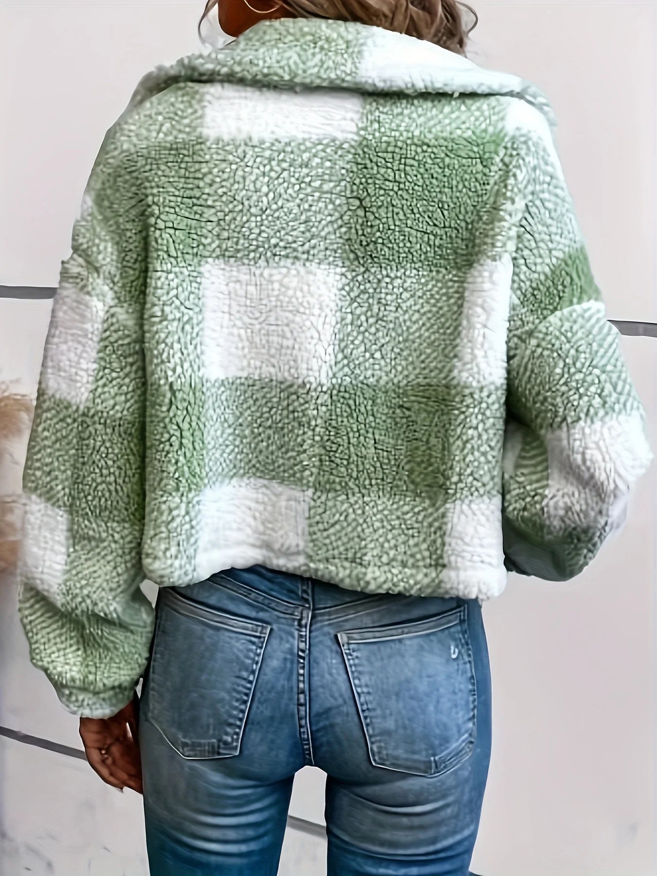 Manteau Court Teddy Femme Carreaux Chaud Automne Hiver Casual