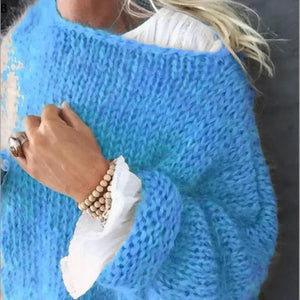Pull en mohair moelleux à manches longues lanterne pour femmes