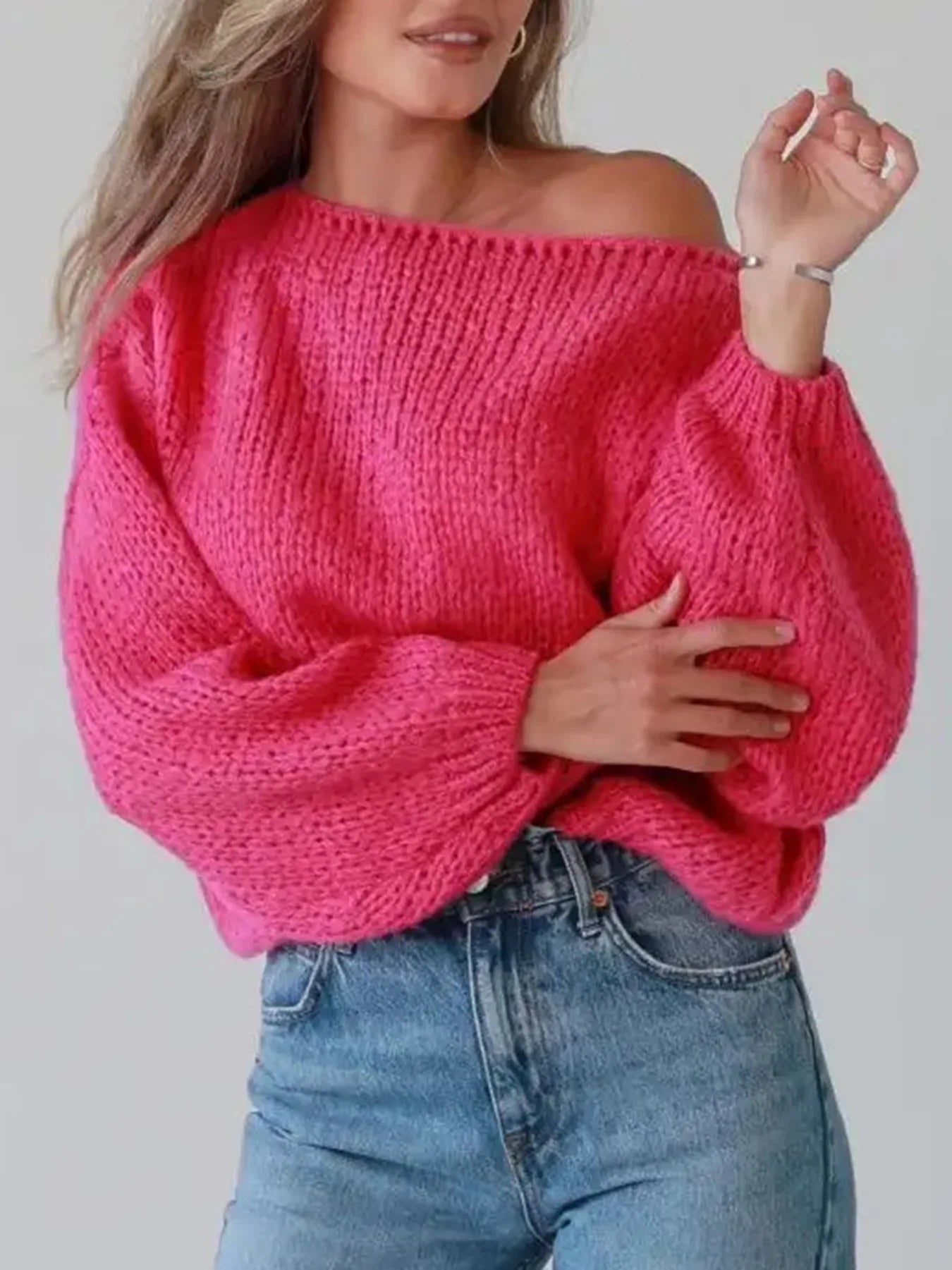 Pull femme oversize à épaule dégagée, maille tricot légère, col bateau chic. Une coupe ample et fluide qui sublime la silhouette tout en offrant un confort d’hiver idéal.