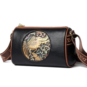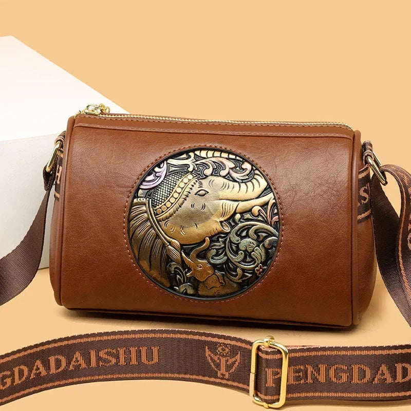 Sac à bandoulière en cuir souple avec motif animalier embossé.