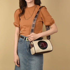 Sac à main en cuir souple avec motif floral embossé. Design raffiné, rangements pratiques et finition élégante. Porté épaule ou bandoulière, idéal pour un usage quotidien ou des occasions spéciales.